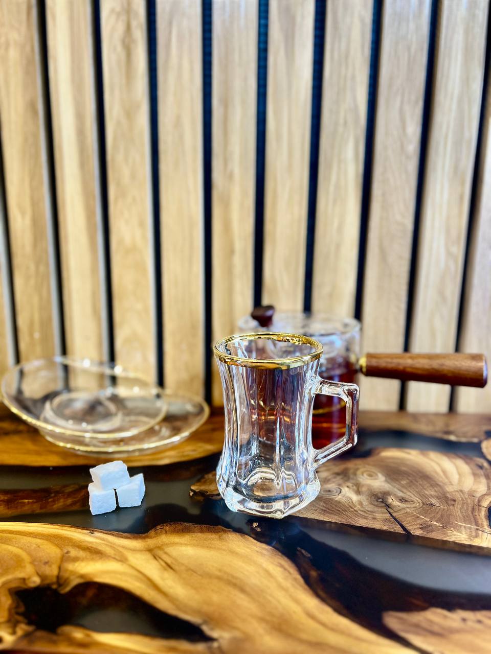 فنجان گلکسی پایه بلند طلایی بسته 6 عددی